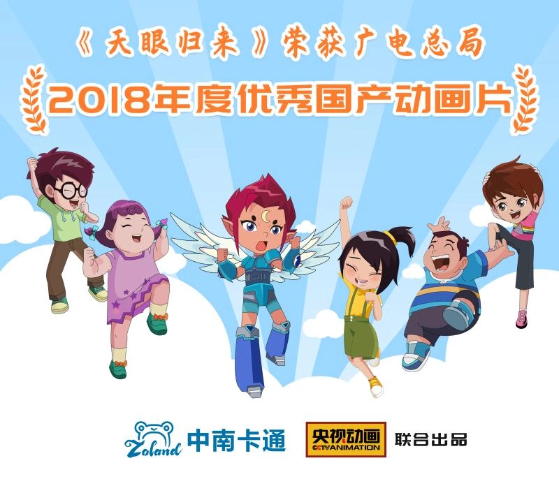 近期,中南卡通又添得两项大奖,分别是原创动画《天眼归来》荣获国家广电总局2018年度优秀国产电视动画片以及由浙江省市场监督管理局颁发的“浙江省知名商号”。