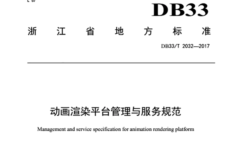 近日,浙江省动漫行业首个地方标准《动画渲染平台管理与服务规范》(DB33/T 2032-2017)已由省质量技术监督局批准发布,并即将于2017年6月22日正式实施。