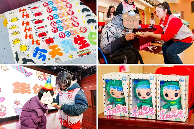 伴随着温馨的《生日歌》旋律,志愿者们推出生日蛋糕,为近期过生日的孩子们集体庆生。此行,志愿者们不仅带来了日常实用礼物,还特别准备了定制的“中南卡通·乐比悠悠”玩偶。这些可爱的卡通形象将继续陪伴孩子们,成为这个冬日里一份温暖的记忆。
