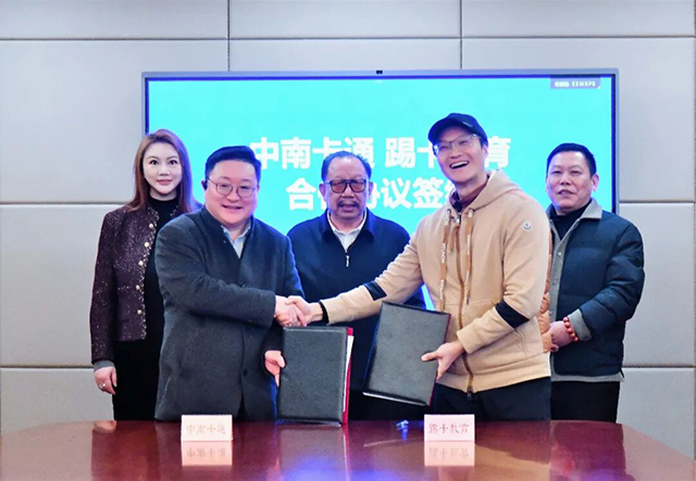日前,中南卡通与杭州踢卡教育科技有限公司正式签署合作协议,双方将成立合资公司,面向国际中文教育,开发“动漫IP+功能游戏+语言教育”全新应用场景。浙江中南集团董事局主席吴建荣、中南卡通董事长吴佳、总经理沈玉良,及踢卡教育董事长江峰、副总经理田欢共同出席签约仪式。